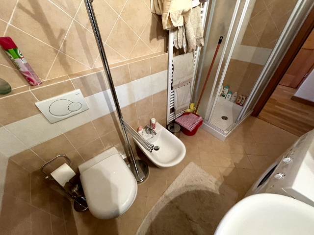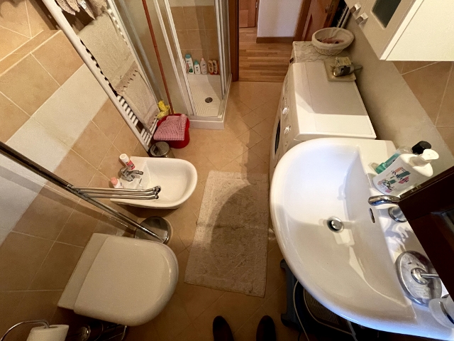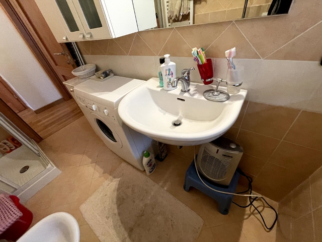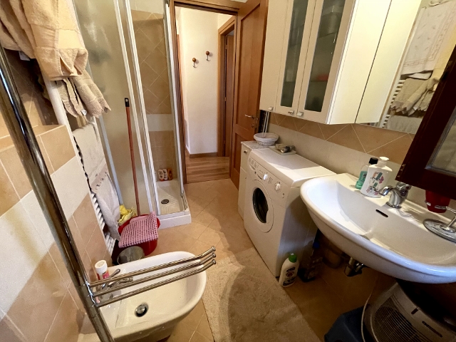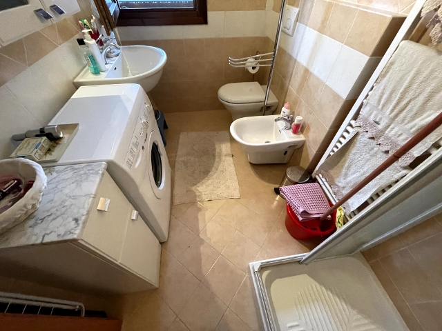Bagno con finestra, attrezzato con Doccia, al cui interno è installata la lavatrice