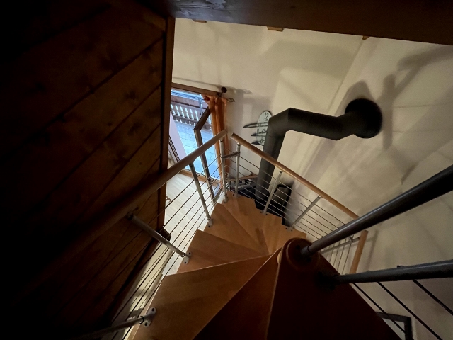 Nella Sala si trova una Comoda Scala a Chiocciola larga 1 metro,