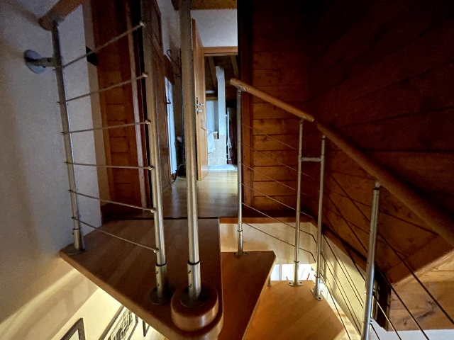 corredata di gradini e corrimano in legno