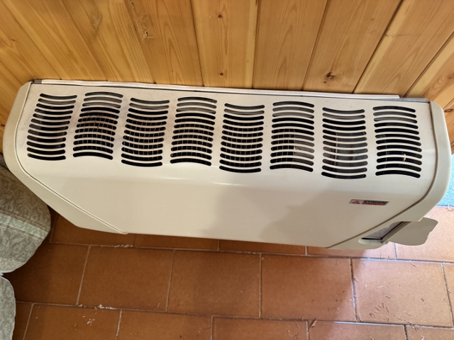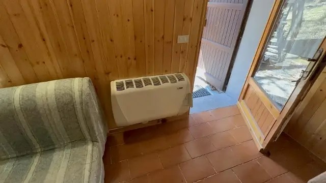 Il riscaldamento è autonomo, alimentato a gas GPL tramite termoconvettore, con produzione di acqua calda sanitaria affidata a un boiler elettrico da 50 litri. A completare il sistema termico, un camino interno contribuisce a creare un'atmosfera calda e accogliente nei periodi più freddi. Le finestre in legno con doppi vetri assicurano un ottimo isolamento termico e acustico.