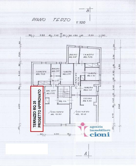 A Fianco della Mansarda Trilocale, può essere ricavato un Terrazzo di Mq 25,